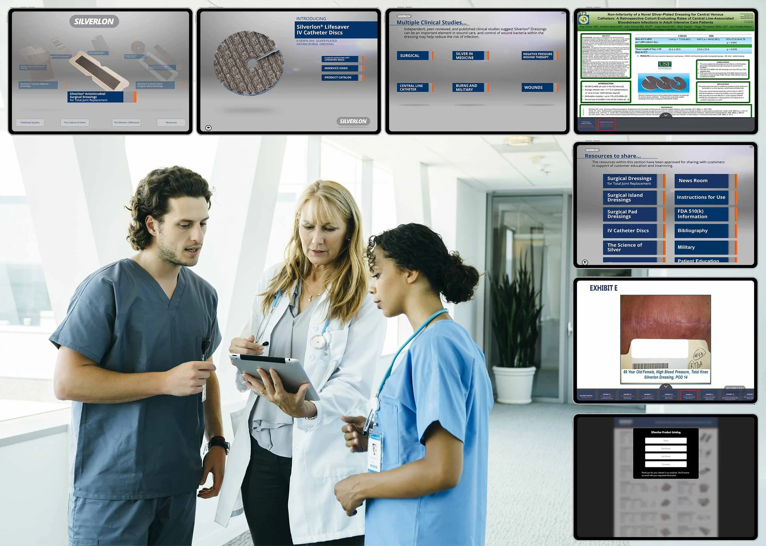 Navigation was designed to adapt in real time: if a rep met with a physician, they could pull up clinical studies and FDA documentation; if with a nurse practitioner, they could show how easily Silverlon dressings are applied.